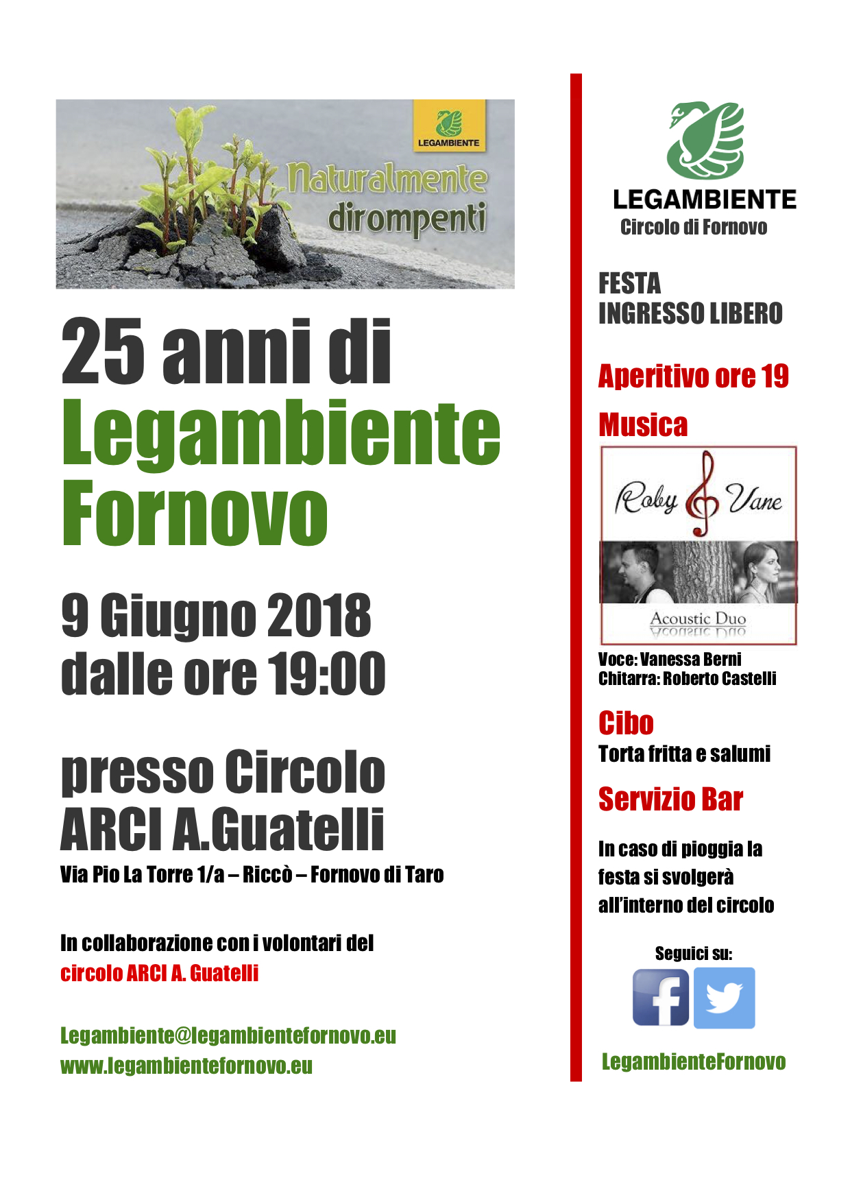 Legambiente Fornovo compie 25 anni e vi invita a festeggiare insieme a noi!